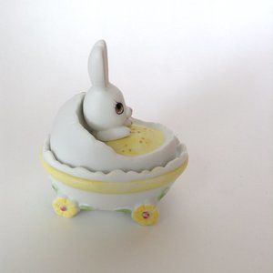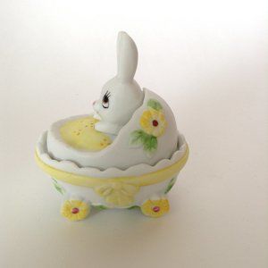 Vintage Lefton China 2785 Bunny Easter Egg Lidded Trinket Box Dish Hand Painted Figurine