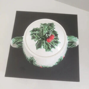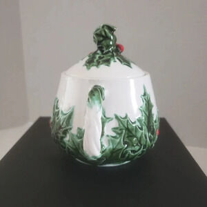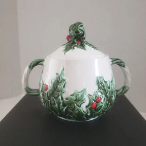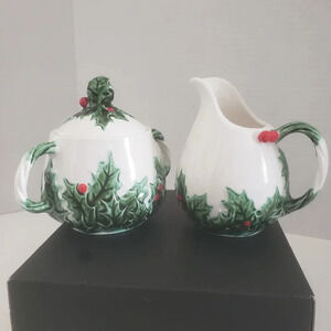 Vintage Lefton White/Green/Red Holly Berry Holiday Creamer/Sugar bowl.