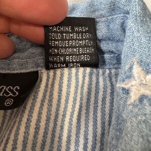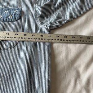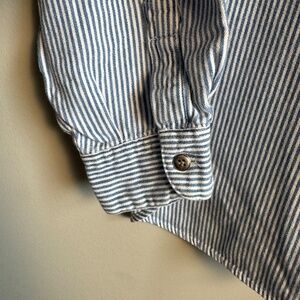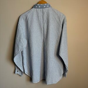 Vintage Lemon Grass Womens Striped Denim Button Up Shirt Blue/White Large Train