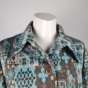 Vintage Leo Danal Blue & Brown Floral Button Up Jacket Size L