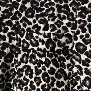 Vintage Leopard pattern long jacket with large buttons. Form fitting long jacket for a sleek look. Le Chateau brand. Features: large buttons, lining, pockets and thick, well-made fabric.