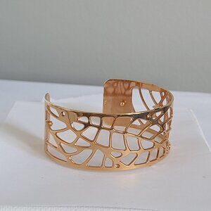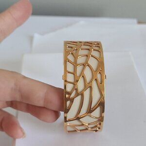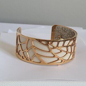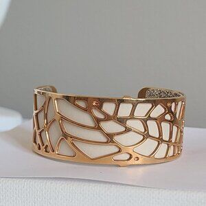 Vintage Les Georgettes Rose Gold Cut Out Cream Leather Sparkle Wide Open Cuff Bracelet