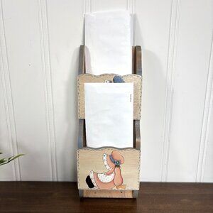 Vintage Letter Holder Wooden Hand Painted Wall Mounted Mail Holder