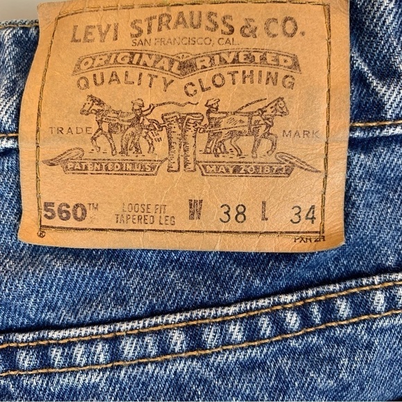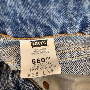 Vintage Levi's 560 Orange Tab Loose Fit Tapered Leg High Waist Blue Jeans 38x34