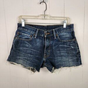 Vintage Levis Dark Denim Jean Shorts Cutoffs Low Mid Rise Frayed Y2K Festival