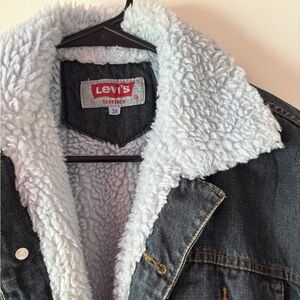 Dark wash Levi’s Shirt Denim Sherpa jacket in vintage preloved good condition