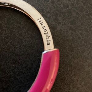 Vintage Signed Lia Sophia Enamel Fuchsia Pink Rhinestone Stretch Bangle Bracelet, Classy Statement Layering Piece, Fashion Costume Jewelry