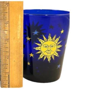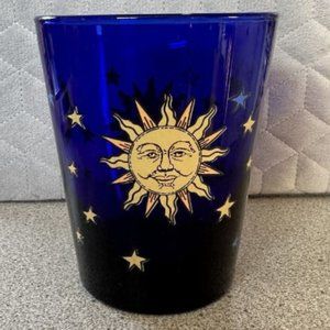 Vintage Libbey Cobalt Blue Celestial Sun Moon Stars Glass Cup Tumbler