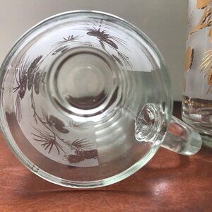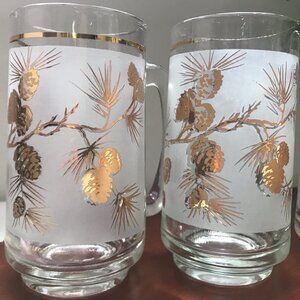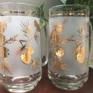 Vintage Libbey Glass Beer Steins Frosted with Gold Pine Cone Pattern Set of 3