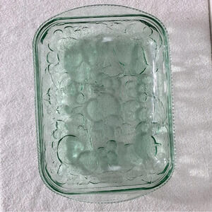Vintage Libbey Green Textured Glass Orchard Fruit Oven Proof Casserole Dish