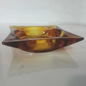 Vintage Libbey mid-century modern amber glass star ashtray . Good condition.