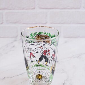 Vintage Libbey Treasure Island glass, part of the collectible barware series. Features a classic design with a gold rim. This piece shows signs of use, with fading on the gold rim, but still displays beautifully and is perfect for collectors looking to complete their set.