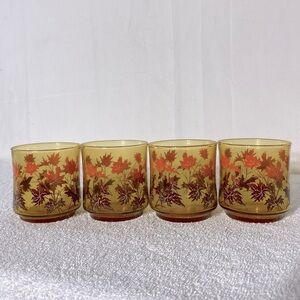 Vintage Libby Amber Glass Autumn Leaf Pattern Juice Glasses x4