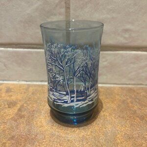 Vintage Libby Blue juice glass Winter Snow Trees Landscape Libbey Only 1 4oz