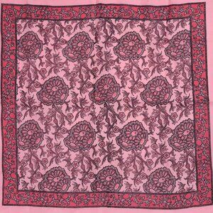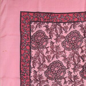 This Liberty scarf brings a classic touch of English charm with its intricate floral pattern. The scarf is a soft pink silk, beautifully adorned with a detailed floral motif in darker pinks and purples. Measuring approximately 26.5" by 26", it's the perfect size to drape around your neck, wear as a headscarf, or tie stylishly to your bag. The 100% silk fabric ensures a luxurious feel, while the subtle sheen catches the light just right. Condition-wise, it's in 8/10 shape, with some minor stains that may come out with a professional clean (though this hasn't been attempted yet). This scarf is a stunning, vintage-inspired accessory that adds a splash of femininity to any ensemble.