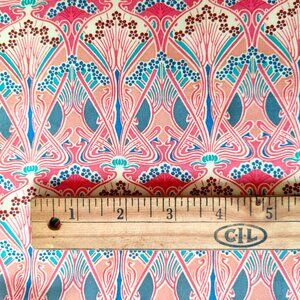 Liberty’s iconic 120-year-old Ianthe Art Nouveau print in shades of blue, teal, pink, red, peach & ivory