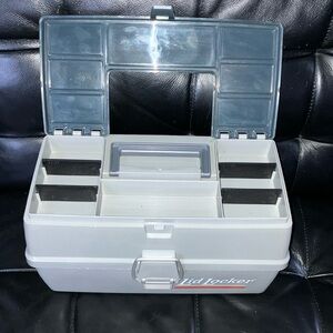 Good used condition, multi tray fishing lure tackle box. Lightweight and compact size.