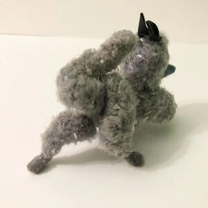 This doll is pre-owned and in used condition. The book is creased and stained, especially the cover page, it is creased in the center and there is a tear on the back. The wolf and doll have some marks and wear on them. Please see all photos for exact item.