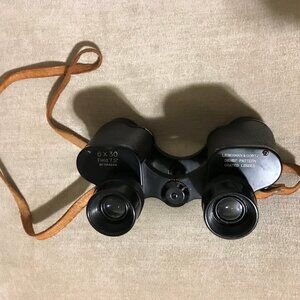 Black color binoculars 6 X 30 Field 7.5 Dienst Pattern Coated Lenses. Good condition hardly used. Few little scratches around the edges. The case is worn looking