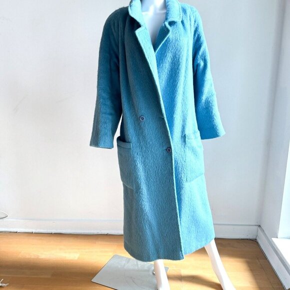 Vintage Light Blue 100% Mohair Wool Winter Coat L.