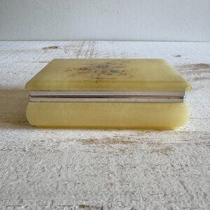 Vintage Light Yellow Genuine Italian Alabaster Trinket Box with Floral Print