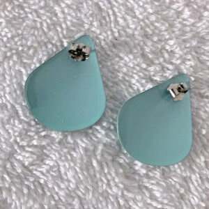 Vintage Light blue Painted Metal Teardrop Shaped Clip On Earrings