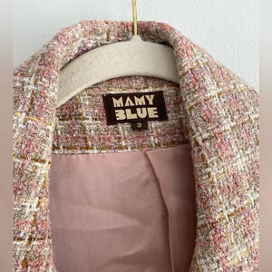 Vintage Lightweight 100% Wool Tweed Plaid Pink Single-Breasted Blazer Size X