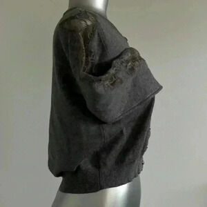 Medium grey colour with stretch lace panels on the sleeves.