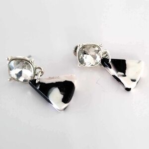 Vintage Lightweight Rhinestone Acrylic Black, Grey/Pinkish White Dangle Earrings