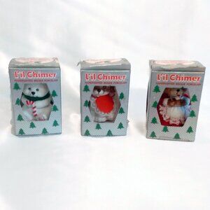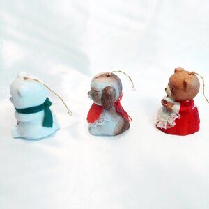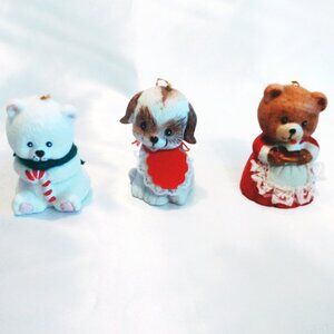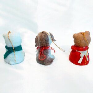 Vintage Jasco 1980's, L'il Chimers-Hand Painted, Bisque Porcelain Christmas Bells. 3 Very Cute Animal Themed Tree Ornaments.