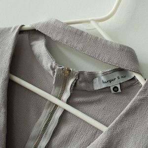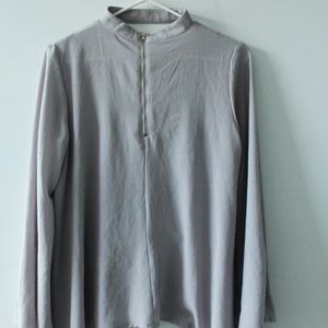 Great for any occasion, this flowy lilac blouse has a chic look that will keep those compliments coming in all day. Details include choker-style cut, bell sleeves with slit, and zipper on the back.