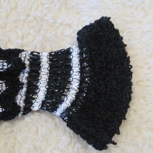 Vintage Lillie Rubin crochet open cardigan. Color: Black/White. SIZE: S. (armpit to armpit measures 17.25") Amazing vintage cardigan features an elegant silhouette. Open front with satin ruffle edge, cropped style. Long sleeves, slim fit, rounded hemline, flared cuffs. Unlined.