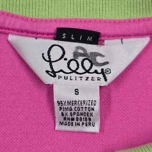 Vintage Lilly Pulitzer Polo Shirt Small Pink Green Slim Y2K Retro Beach Resort