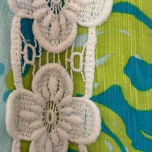 Super cute Turquoise shades with Lace trim and two hand pockets - fully lined in cotton. Great for Florida.