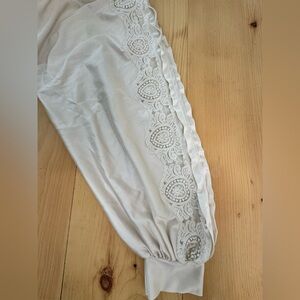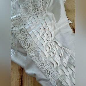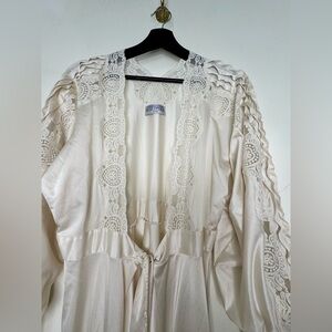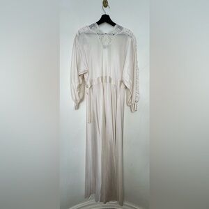 Vintage Lily of France Nylon Pleated Puff Sleeve Lace Heart Waterfall Back Gown