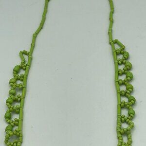 This super sweet and delicate seed bead necklace is made with lime glass beads in a simple yet elegant woven pattern.