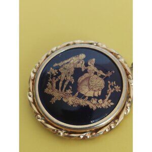 Vintage Limoges Castel France Courting Couple Cobalt Blue Porcelain Pin Brooch
