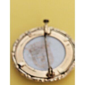Measures 1 1/2" diameter, porcelain center with gold tone framing..