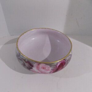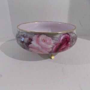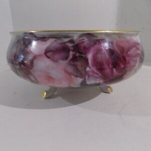 Vintage Limoges France 3 Footed Bowl Dish Pink Purple Roses
