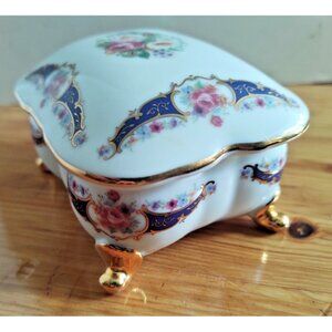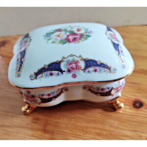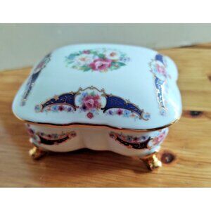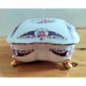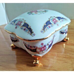 Imperial Limoges Floral Trinket Box Gold Gilded - Made in France 4 1/4" x 3 1/2" x 2 3/4" tall