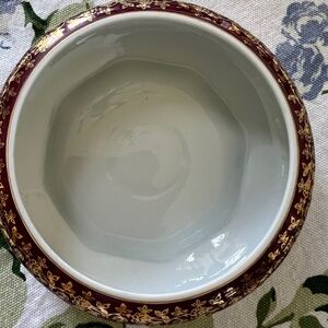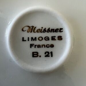 Absolutely lovely!!! From the vintage Meissner collection. In excellent condition with no scratches to the gold rims. Stands approx 2" tall & 4" in diameter (exterior) 3.25" in diameter inside rim to rim. From a smoke free home.