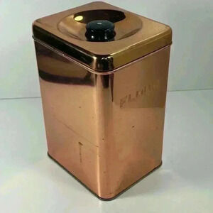Vintage Lincoln Beautyware copper coated tin flour canister with lid