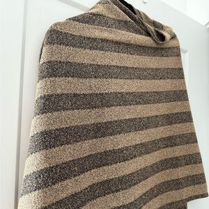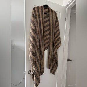 Vintage Linda Lundstrom black & tan striped wrap scarf shawl - One size