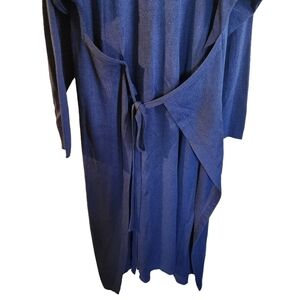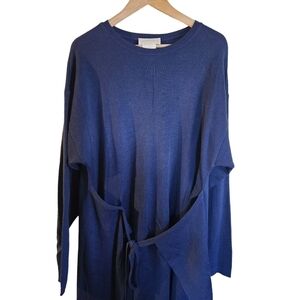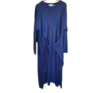 Vintage Linda Lundstrom,Canada, blue knitted, long-sleeve, dress. Pull-on, long-sleeves, crew-neck, tie over front, wrap style, opening on the sides. Super comfortable, flattering when on, warm, stretchy and in great condition size Large.
