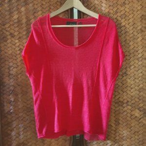 Very good preowned condition, poppy red, sleeveless, knit top by Line & Dot. A very cool 80s throwback top. The fabric has an overall semi-sheer look, so may need to be worn with a bralette or camisole.