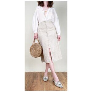 Stunning Vintage Linen Button Down Midi Skirt A-line Old Money Quiet Luxury French Girl