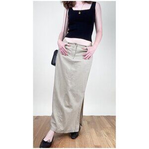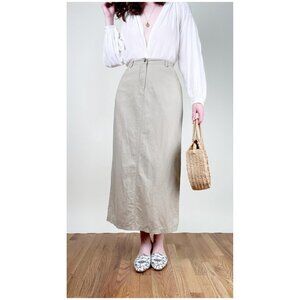 Vintage Linen High or Low Rise Maxi Skirt Straight Column Fit 90s Y2K Euro Girl