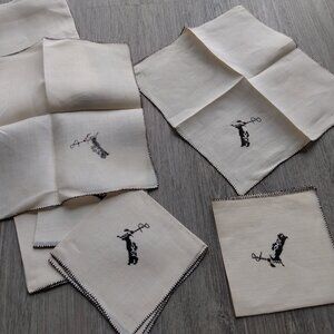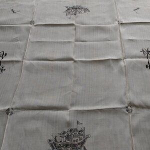 Vintage Linen Tablecloth & Napkins Set Black Cross Stitch Dragon Boat Pagoda