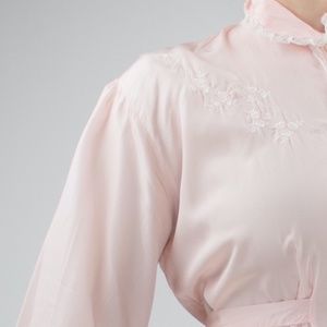 Vintage Lingerie 1960βs Pastel Pink Peignoir Silk Peignoir Embroidered Longsleeve Dressing Gown Slip Dress π