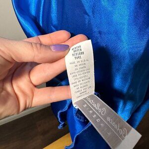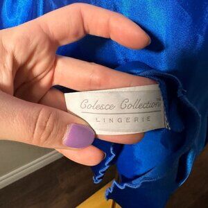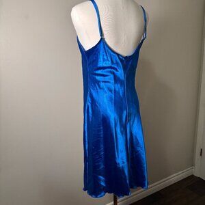 Vintage Lingerie Women's Blue Satin Chemise Medium Nightgown Y2K